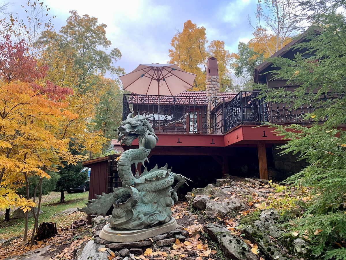 If William Morris and the Brothers Grimm had a love-child cottage, it would be the Owl's Perch. This stylish vintage "fisherman's" cottage perched atop 100' of whaleback granite ledge overlooking Candlewood Lake has a feeling all its own. Cozy and unique, reminiscent of a bygone era of escape-from-the-city summer rustication, this is a perfect snug for a romantic couple or solo-"Thoreau". Descend the stone steps: in 200 paces discover a parklike setting of private lakefront!