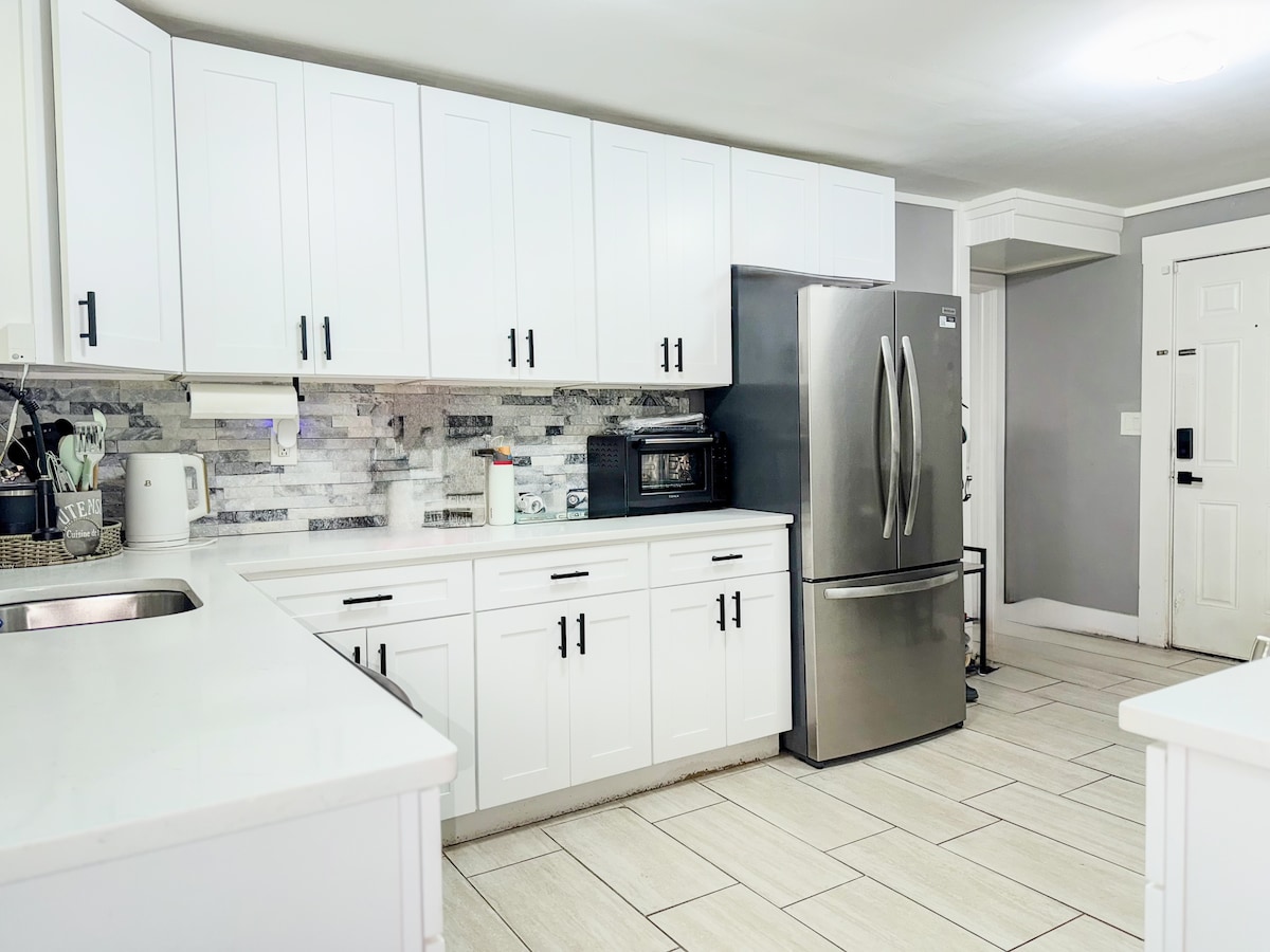 配備現代裝潢的獨立一房公寓,提供短期或長期住宿所需的一切設備。空間包括與單間公寓區域分開的全套廚房,以及洗衣機和烘乾機。單間公寓提供一張雙人床、拉出式床、工作空間、70 吋 Roku 智慧電視和手繪藝術品。 位置 距離梅里特公園大道(Merritt Parkway)不到2英里,靠近I-95和東諾沃克火車站。距離大型購物中心1英里,距離當地便利中心不到半英里。