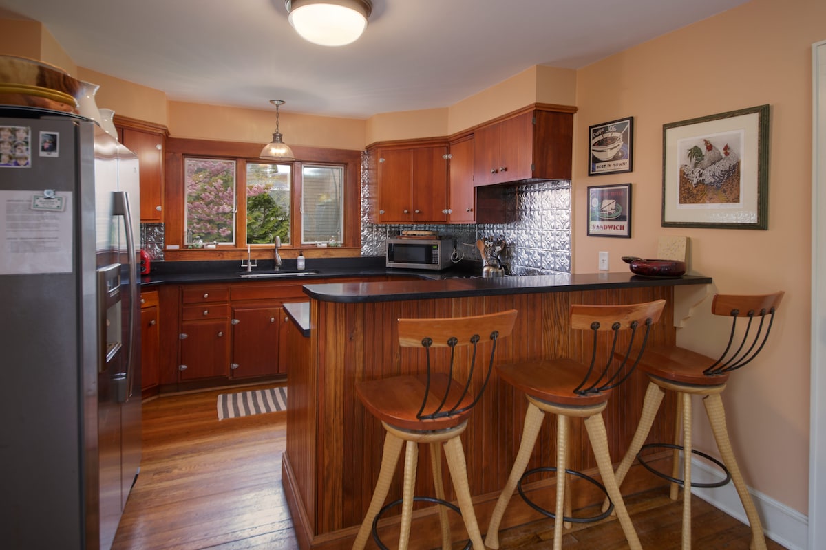 Hayden House is a cozy, tranquil island retreat that sits guests on 1.5 acres and is only a short 0.5 mile walk to downtown. The sun rises over the large deck that overlooks the back yard...and you will see beautiful sunsets while sitting on the front porch of this farm style home. Please note that Hayden House can accommodate 10 guests during the summer and 8 guests November through April.