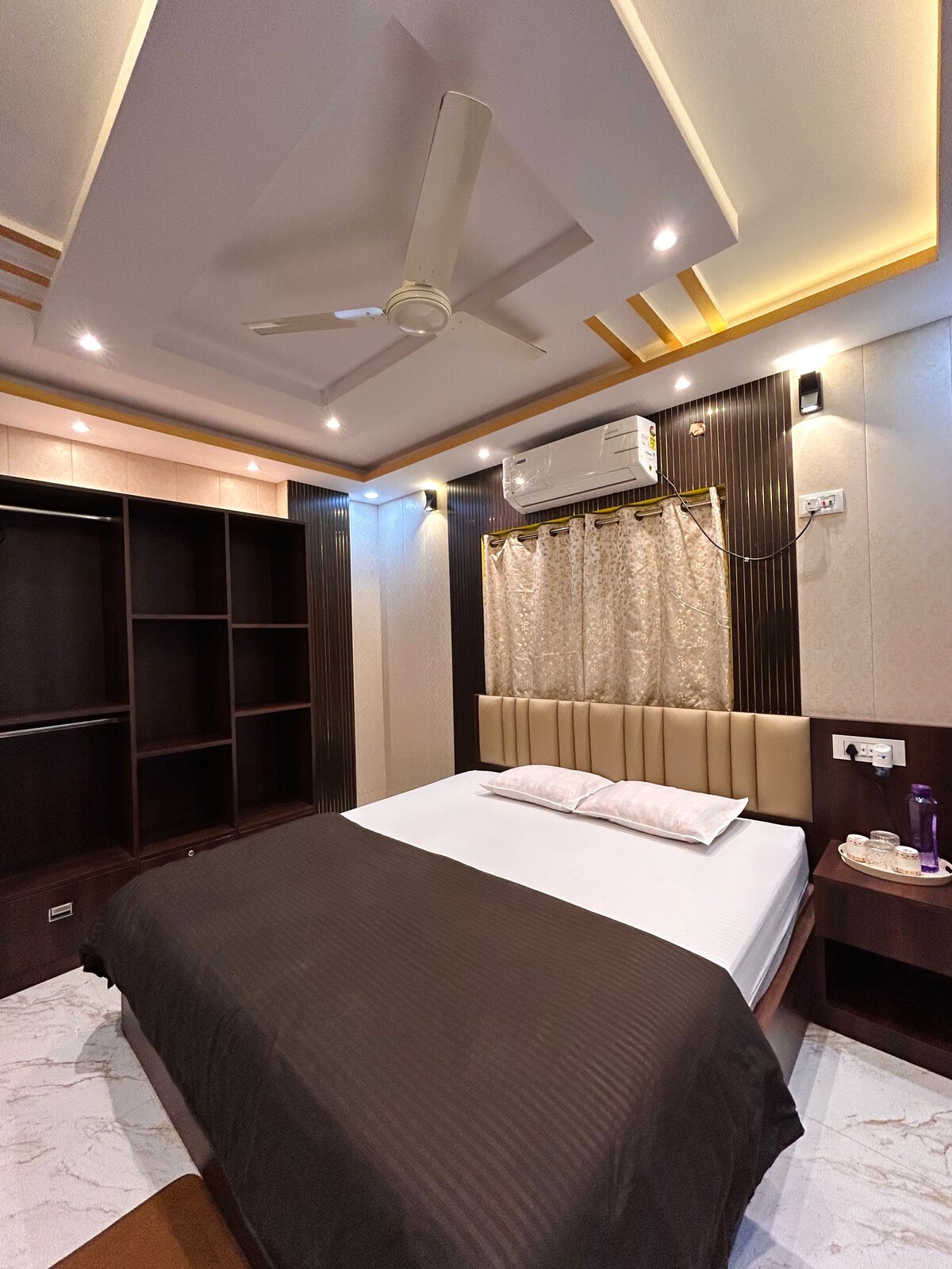 我們的房源位於加爾各答新城的中心。國際機場、巴士、地鐵、電影院、商場、市場、醫院、大學、IT辦公室、旅遊景點等都在附近。我們為您提供寬敞的大廳,配有智慧電視。用餐區、設備齊全的廚房、2間配有空調的臥室,配有附加浴室和陽臺,包括1張加大雙人床、1張標準雙人床和1張額外的床墊,最多可容納6人,第6位房客每晚額外收取800美元。