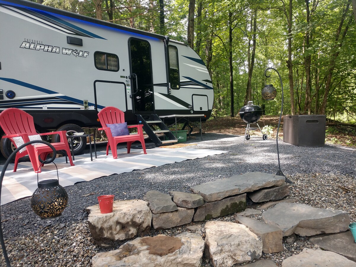 這是2014年32英尺的露營車,環境安靜。 自給自足。私人28英畝,有11.5英畝的湖泊。 房源內還有兩個露營地和主屋。 4月1日至10月30日期間的季節性,視天氣而定。 有3個滑梯。 提供火坑。露營車內禁止抽煙。 靠近81號州際公路、錫拉丘茲、賓漢頓、伊薩卡,以及北部和南部。 當地餐廳、夏季劇院、購物中心、SUNY Cortland、康奈爾大學、伊薩卡學院、TC3等。