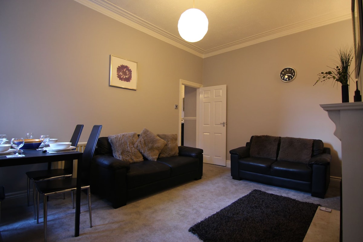 一個可愛的設備精良的公寓,位於非常安靜的cul de sac,靠近紐卡斯爾市中心,床鋪包括一張雙人床、一張單人床和一張Z床(配有羽絨被和枕頭) ,位於雙人床下方,最多可供4人入住(當然是2人共用! )。步行即可抵達當地地鐵站(200公尺),您可以乘坐火車前往整個區域(海岸、機場、紐卡斯爾市中心、蓋茨黑德體育場、地鐵競技場),當地有很多商店、咖、酒吧和餐廳。