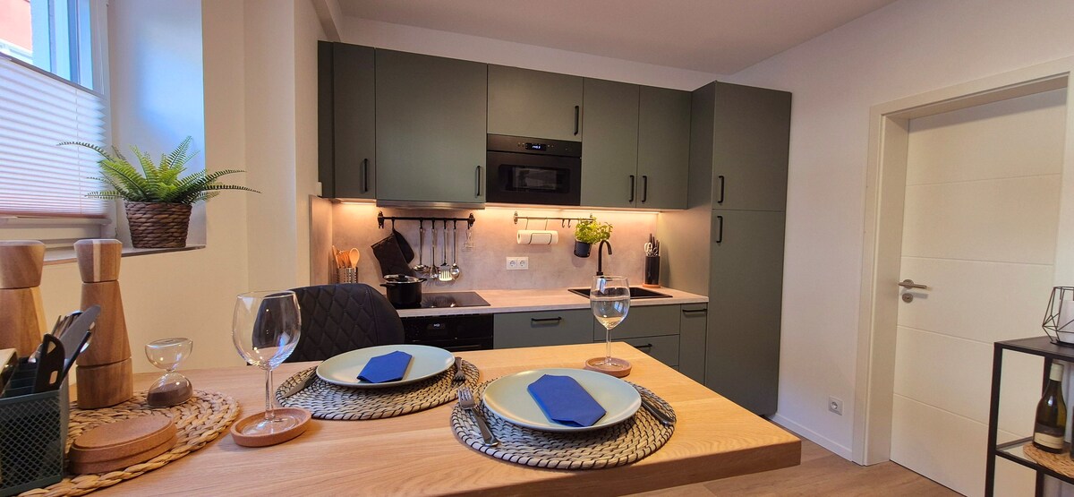 這間 67 平方公尺的翻新公寓位於羅馬橋 (Römerbrücke) 和卡爾·馬克思故居 (Karl-Marx-Haus) 之間,擁有真正的 Loft 風格。時尚的家具、大沙發、休閒坐墊和私人按摩浴缸,讓您在美麗的特里爾度過充滿活力的一天後,享受放鬆的舒適氛圍。 地理位置優越,適合城市遊覽:步行區開始距離650公尺。距離皇帝浴場 (Kaiserthermen) 和黑門 (Porta Nigra) 約 15-20 分鐘步行距離。1 號巴士站距離僅 350 公尺(Barbaraufer)。