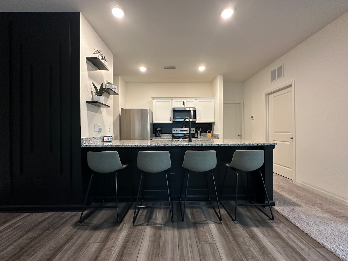 在這個設計時尚又安靜的空間中好好放鬆身心。剛剛重新裝修過,非常乾淨。距離Clayton市中心10分鐘,距離北卡羅萊納州Raleigh市中心25分鐘。全套廚房。主臥室配有加大雙人床和二樓的全床。三樓是閣樓,配有兩張雙人床。很棒的住宿,適合與孩子一起入住,街對面有社區公園。客廳有天然氣暖爐。露臺上有螢幕,私人車庫可停2輛車。