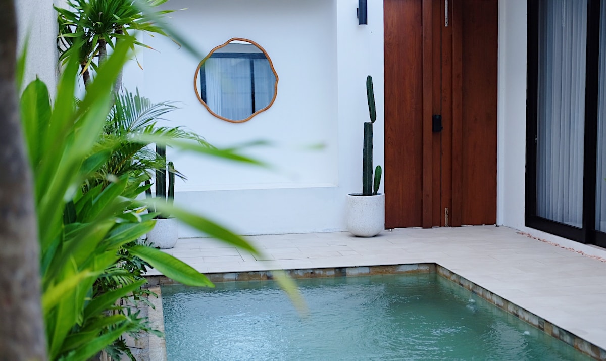 歡迎來到一個溫馨浪漫的空間。 您自己的私人別墅小屋,可供2人入住,配有私人遊泳池和熱帶植物、樹木和花卉牆。 這為您在住期間提供隱私和舒適。