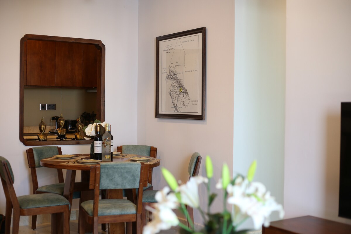 Welcome to our urban apartment in the serene Thu Thiem Villa Neighborhood. This is 1 bedroom apartment where you can enjoy a unique view of buffalo and crop fields. Located in D2, we're just a 25-minute journey from the city's hustle and bustle. To add to your adventure, we have a motorbike available for rent, perfect for exploring the city in a fun way! Our apartment features a gym, pool, nearby supermarket, and charming coffee shops. Can't wait for you to experience it!
