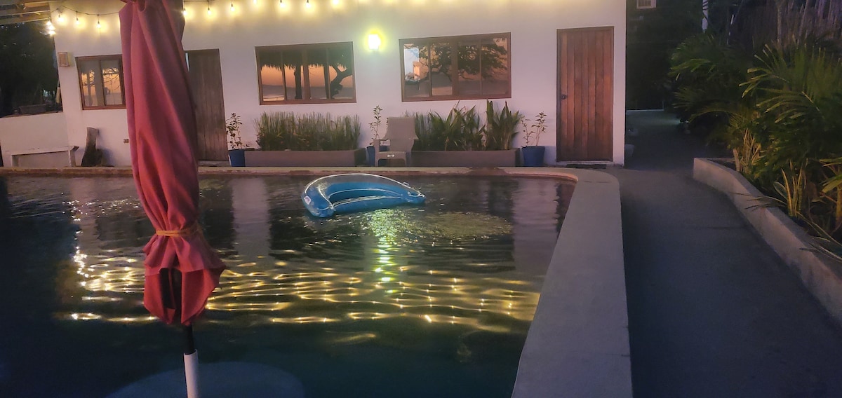步行1分鐘即可抵達El Transito的火山沙灘,逃離到我們的寧靜綠洲! 非常適合衝浪者和尋求安靜的人。 在微風吹拂的戶外牧場放鬆身心,共用小廚房。 在嬰兒泳池中放鬆身心,或使用強大的WiFi保持聯繫。 提供冷氣,讓您享受極致舒適(每間房間每晚加收 8 美元)。