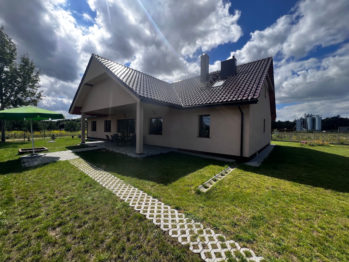 Przepiękny domek w otulinie natury w doskonałej lokalizacji! 300m od jeziora z piaszczystą plażą i pomostem i 100m do lasu! Olbrzymi zadaszony taras, hamak i huśtawka. Zadbana działka leśno-trawiasta. Ognisko z drewnianymi ławami, domek zabaw dla dzieci, składany basen. Doskonały dojazd drogą ekspresową S7! Domek składa się z salonu, 2 sypialni, wyposażonej kuchni i łazienki. TV, WiFi LTE. W okolicy: spływy kajakowe Łyną, trasy rowerowe, skansen, zamki, Grunwald!