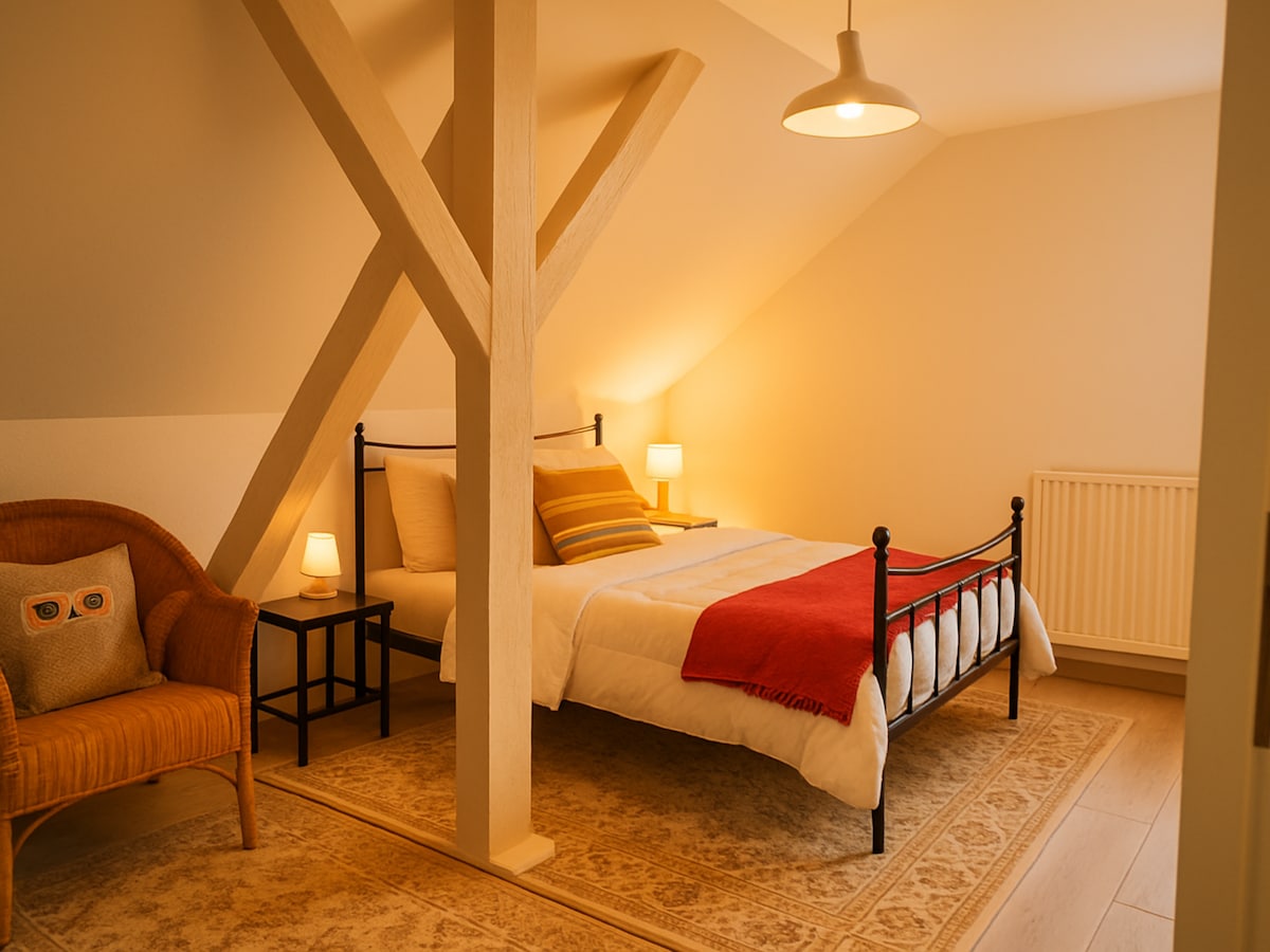 您可以租我們房子的全新裝修的一樓,靠近「孚日」山脈,在一個小村莊。您可以使用兩間臥室、一間帶小廚房的客廳和一間浴室。還有一個14平方公尺的私人露臺。您會在抵達時拿到鑰匙,您可以隨意進出。
