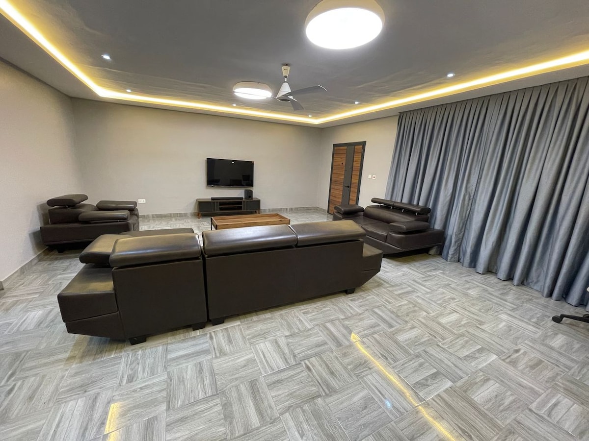 24/7 200kva standby generator and Solar DSTV with full channel access Netflix Breathtaking views High-speed internet Located in the heart of Accra, we're just a stone's throw from Achimota Mall and De Temple social center, perfect for swimming and exercising. The airport is 30-minute drive away. For your convenience, we have a professional laundry service, barber shop, and hair salon on site. Plus, "Ayewamu by Jane" is right next door, serving up delicious local cuisine.