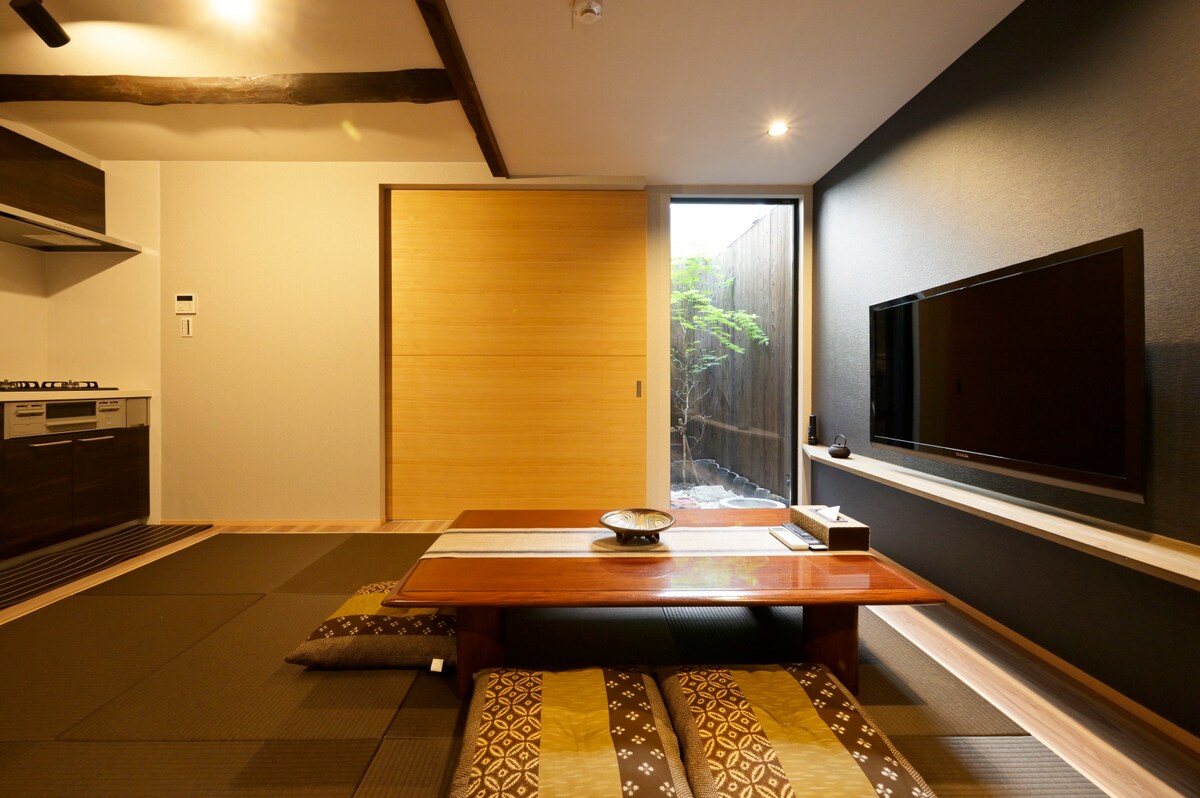 方便且平靜的氛圍,二條城堡西邊。 我們翻修了我們家族的歷史別墅,一棟傳統的京都聯排別墅(Kyo-machiya), 由京都市指定,建於 200 多年前。 它有迷人的小型美麗日式花園。 陽光明媚的房子,面向南方。 步【行8分鐘即可抵達地鐵二條站】 步行【11分鐘即可抵達JR二條站】 乘坐JR火車【7分鐘即可抵達京都站】 總面積/69.64㎡( 1樓+ 2樓) 可容納人數/ 4人; 1人團體 ※您可以通過隔板將臥室分為兩間