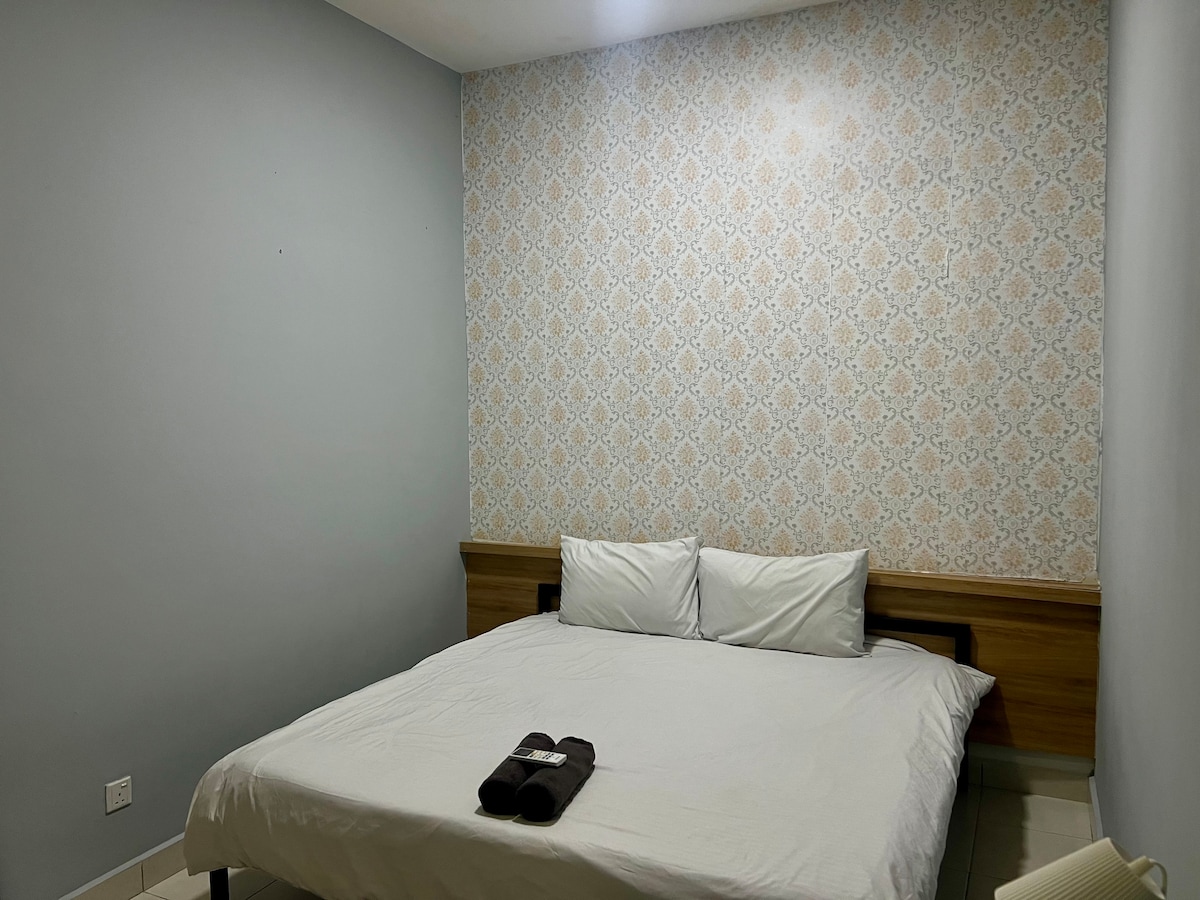 舒適、溫馨的公寓。舒適的雙人床,配有空調。 優質的裝潢和設備與服務——高速 Wi-Fi、40 吋 Android 智慧電視(免費 Netflix)、雙門冰箱、空調、微波爐、電磁爐、電鍋、烹飪用具、烤麵包機、電熱水壺、帶暖氣的淋浴間、熨斗/熨衣板、洗衣機。 前往商場很方便,有餐飲、電影院、自動櫃員機/貨幣兌換處、超市、咖啡廳、理髮店、時尚/五金/小工具門市。 開車/搭計程車25分鐘即可抵達吉隆坡國際機場。