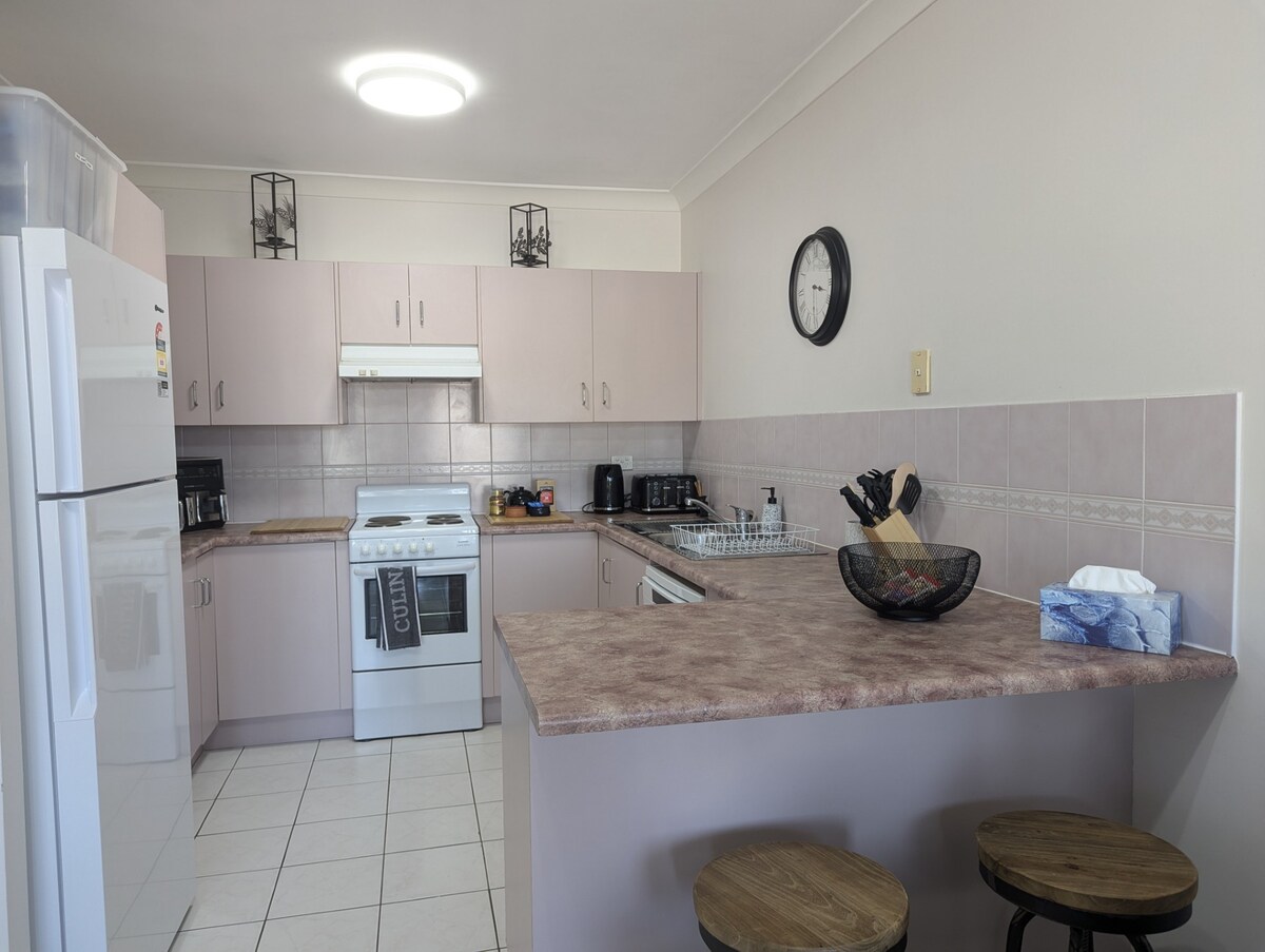 Take it easy at this unique and tranquil getaway. The 1 bedroom unit is on the ground floor of our farm house and easily accessible from main roads with undercover parking. Situated on a rural property only 5-8 minutes to the coastal towns of EMU PARK and YEPPOON beaches, the self-contained unit is cosy and inviting. Sit back on the covered outdoor area with a beverage, overlooking the property and dam, and bask in the serene sounds of the country, beautiful sunsets, farm animals and wildlife.