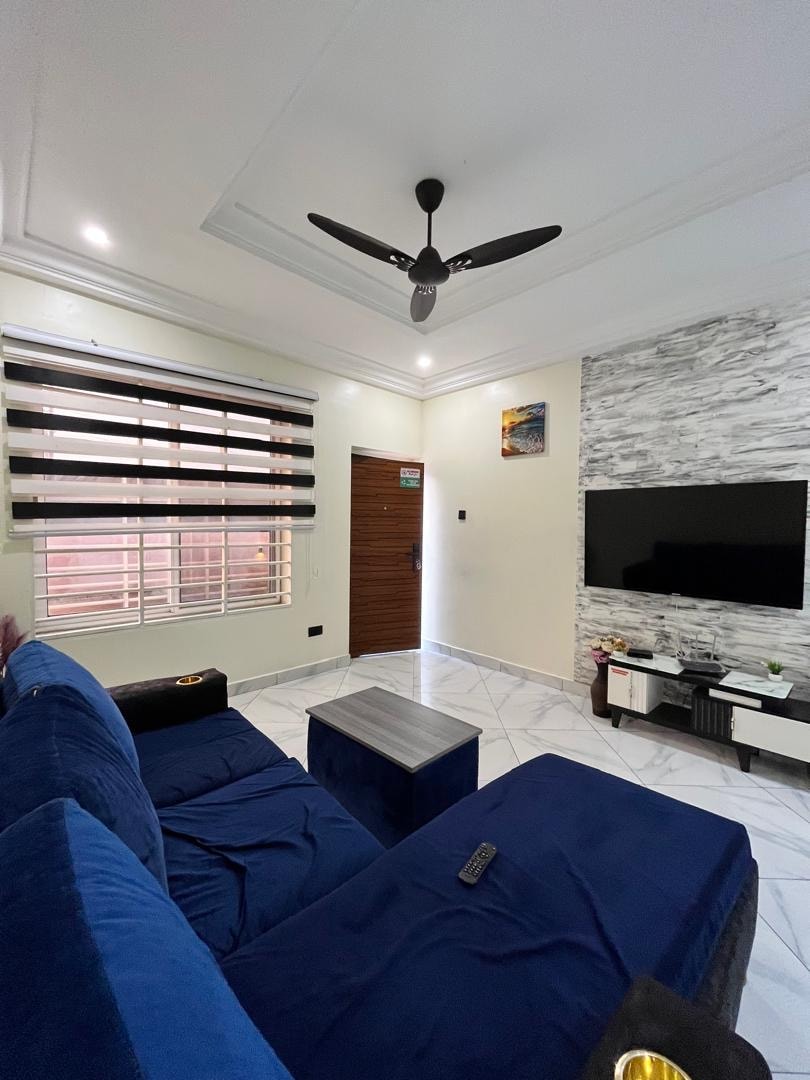 入住這個寧靜的住處,與全家人一起放鬆身心。 我們的房源位於Community 26, Tema ,靠近N1 (高速公路延伸) , Community 25 Palace Mall後面。 該地區擁有各式各樣的商店、餐廳和服務,步行即可抵達。 八個單位均配備齊全,配備三個LG空調、洗衣機、不銹鋼電器、三個風扇、舒適的加大雙人床以及廚房和餐具。免費停車。