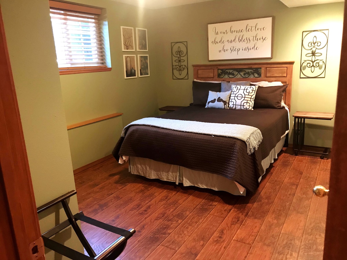This basement rental with a private entrance is located in a quiet area in reach of Springfield, Branson and surrounding areas. The kitchenette area decorated in a Coca-Cola theme provides a bit of nostalgia, adding to the cozy feel of the space. We desire to make your stay as comfortable as possible, providing local insights while also working hard to honor your privacy. A laundry room is a shared area, but we work hard to limit use while guests are here.