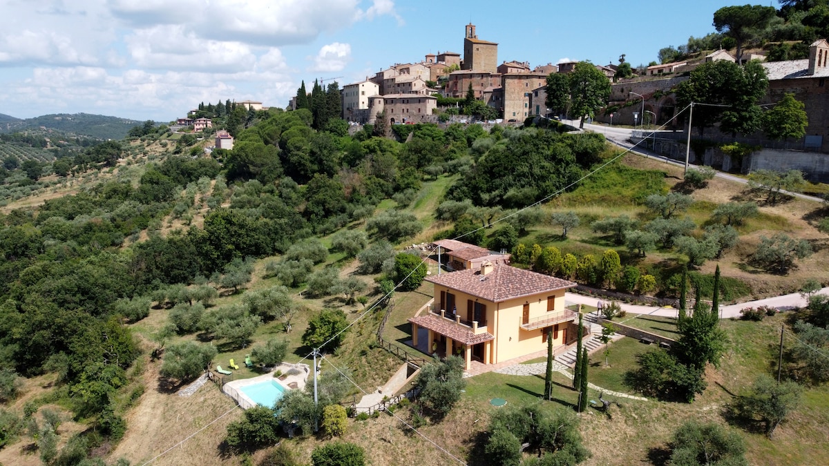 天堂之窗讓您嘆為觀止。作為我們唯一的房客,您將被無限的景觀、無盡的寧靜、鳥鳴聲和鹿叫聲所包圍。在山谷下方和步行時,您可能會看到狐狸、雪貂和野豬。收集豪豬羽毛。深呼吸! 位於羅馬和佛羅倫斯之間。靠近錫耶納、奧爾恰山谷和無數溫泉。一個私人的天堂,周圍有神聖的餐廳和山頂的古代珠寶,如蒙特普爾恰諾和蒙塔爾奇諾的高級葡萄酒。