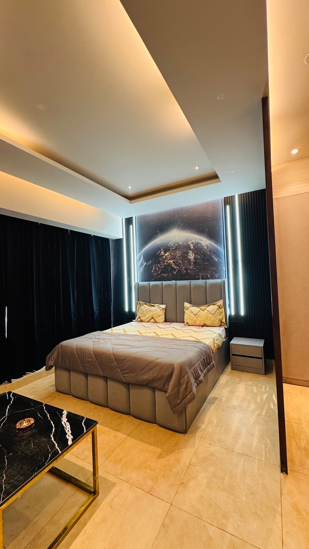 豪華優雅的單臥室頂層公寓,配有休息室、浴缸和室外露台花園,配有Schindler電梯。 入住這個位於市中心的房源,您的家人將離所有地方都很近。 此房源毗鄰Moolchand地鐵站,您可以從那裡前往德里/國家首都區的任何地方。 大型投影機可供娛樂、瀑布和戶外休息、露臺花園和專用酒吧櫃檯,讓您舒適。 提供設備齊全的儲藏室,配有餐具。