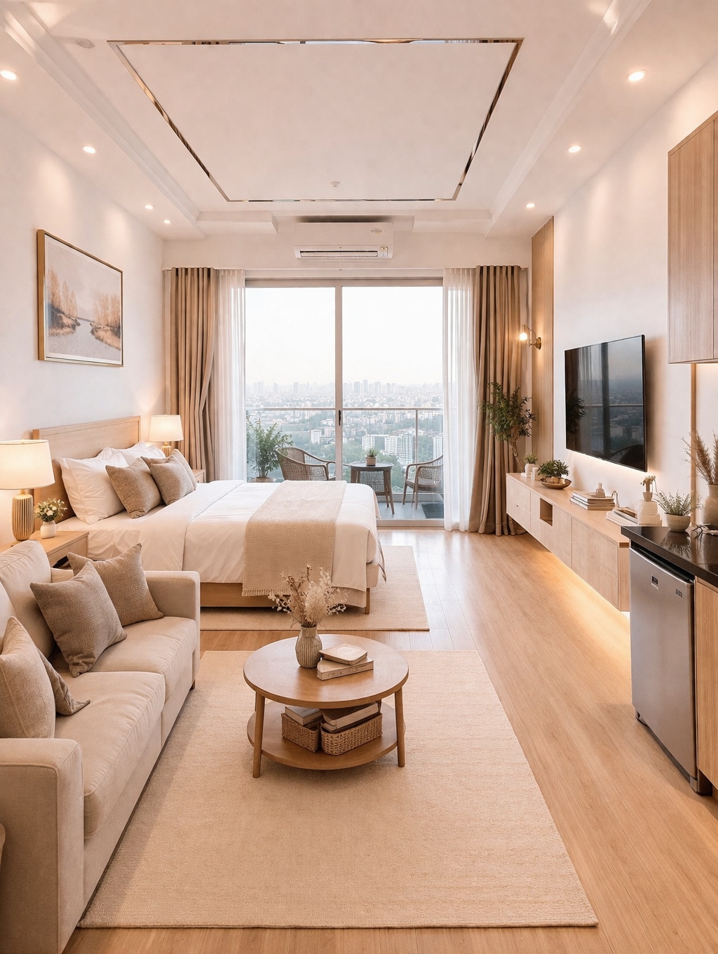 Amberlyn by Saanjh Savera Stays坐落在大諾伊達安靜的邊緣,是一間精心設計的單間公寓,非常適合悠閒的早晨和壯麗的日出景觀。 無論您是遠程工作人員、城市度假的情侶還是想充電的單獨旅行者,這個空間都能提供舒適、平靜和柔和的逃離感。 它位於14樓,擁有令人驚嘆的自然光線和下方城市景觀的寧靜景觀。