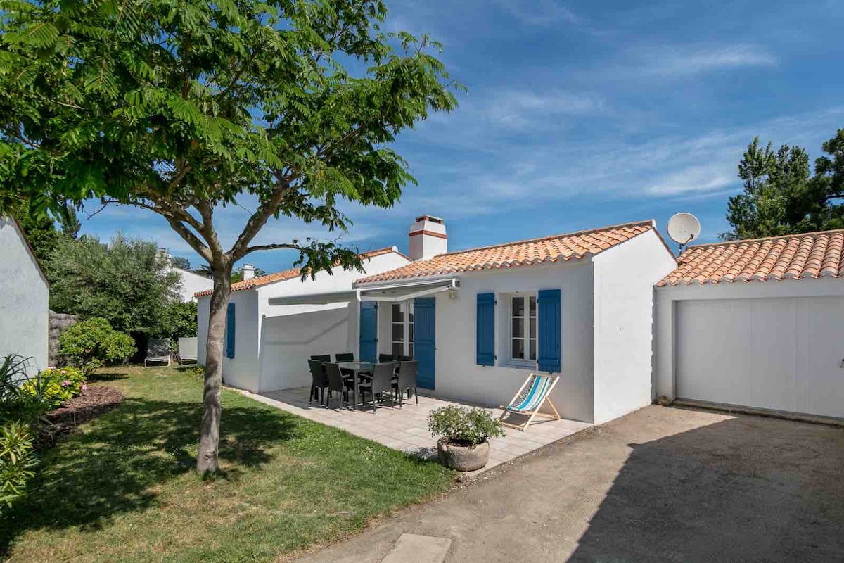 Maison indépendante typique de 50 m2 Grand salon avec kitchenette équipée ( micro ondes et machine Nespresso ) Jolie chambre avec belle salle de bain. Lit de 160 cm très confortable . Jardin privatif (400m2) avec terrasse et transats (ouvert en partie sur le jardin de la maison du propriétaire : très discret) vous serez chez vous ! A 3 mn à pied de la grande plage de Luzéronde A 5min en vélo du port de l'Herbaudière et 20min par la piste cyclable du centre de Noirmoutier