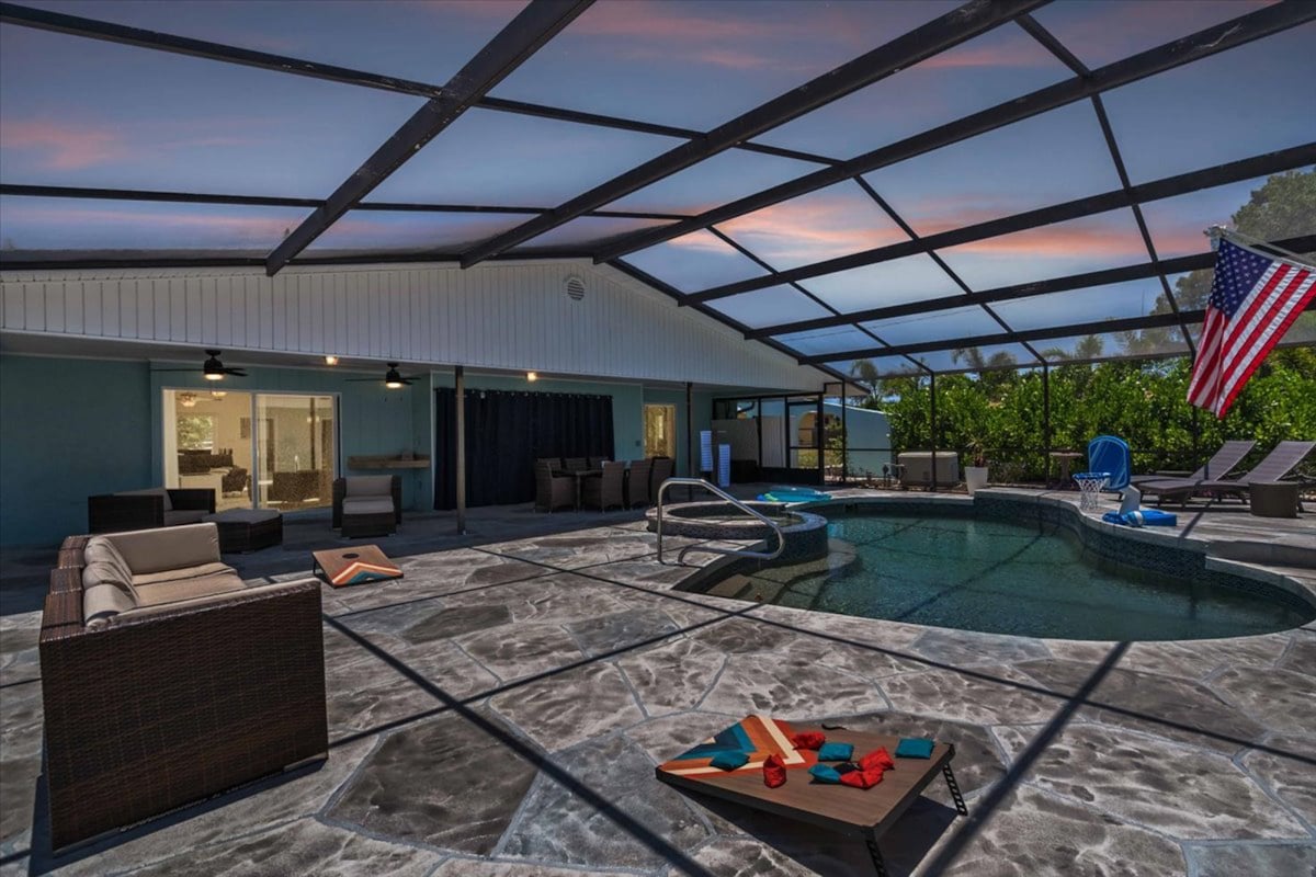 Beautiful, bright, freshly decorated 3 bedroom house just 2 miles from Gulf Coast beaches. When not at the beach, relax out at the lanai with a saltwater pool (heated November-March) and hot tub in our private backyard.