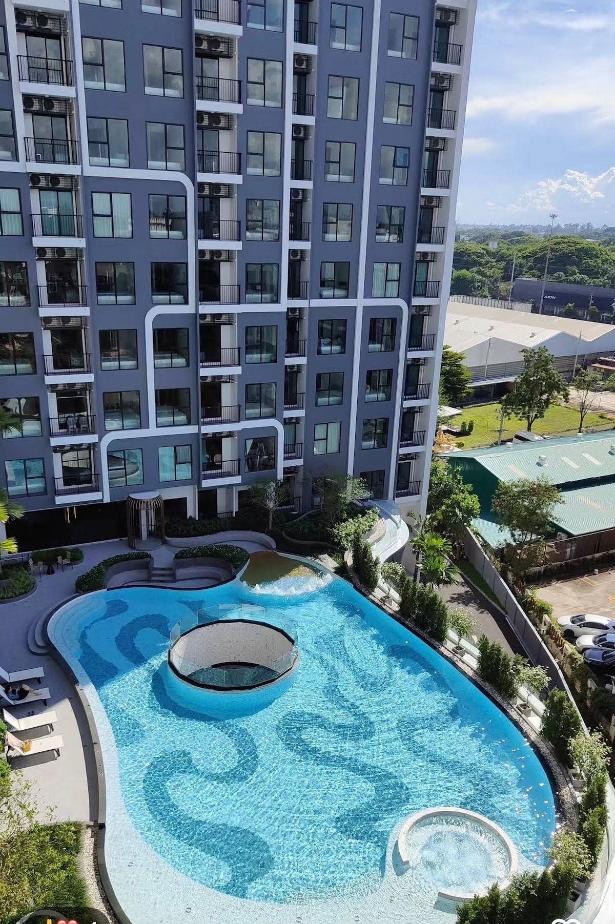 清迈市区全新最大水系公寓,位于清迈一环Central festival尚泰商场旁(步行5分钟可达),距离曼谷医院驾车仅5分钟。小区配套齐全,健身房,瑜伽室,台球桌球,共享厨房,BBQ烧烤,学习室,游戏室,桑拿,公共淋浴,超大泳池,大型滑滑梯,足不出户,享受配套小区每天有巴士班车去各大超市和本地市场,有送水上门服务,洗衣,打扫服务。非常方便。最齐全的配套,独一无二的度假感觉。