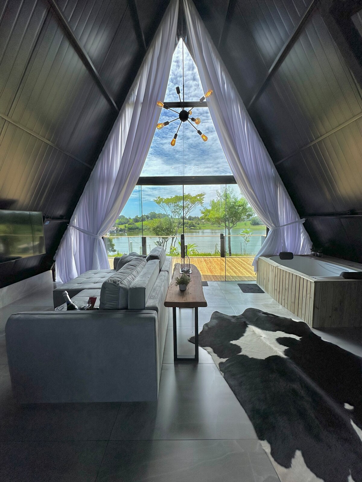 在這個安靜而時尚的空間中放鬆身心。 獨一無二的地方,小屋可提供所有便利設施,享有令人驚嘆的景觀! 我們有一個小型室外燒烤爐、火坑(室外壁爐)、室內按摩浴缸、全功能廚房、啤酒廠。 100%純棉床單,最少200針,500克/平方米浴巾和L'Occitane便利設施,為房客帶來極佳的體驗! 可輕鬆前往 Foz do Chapecó 水電站的湖泊。