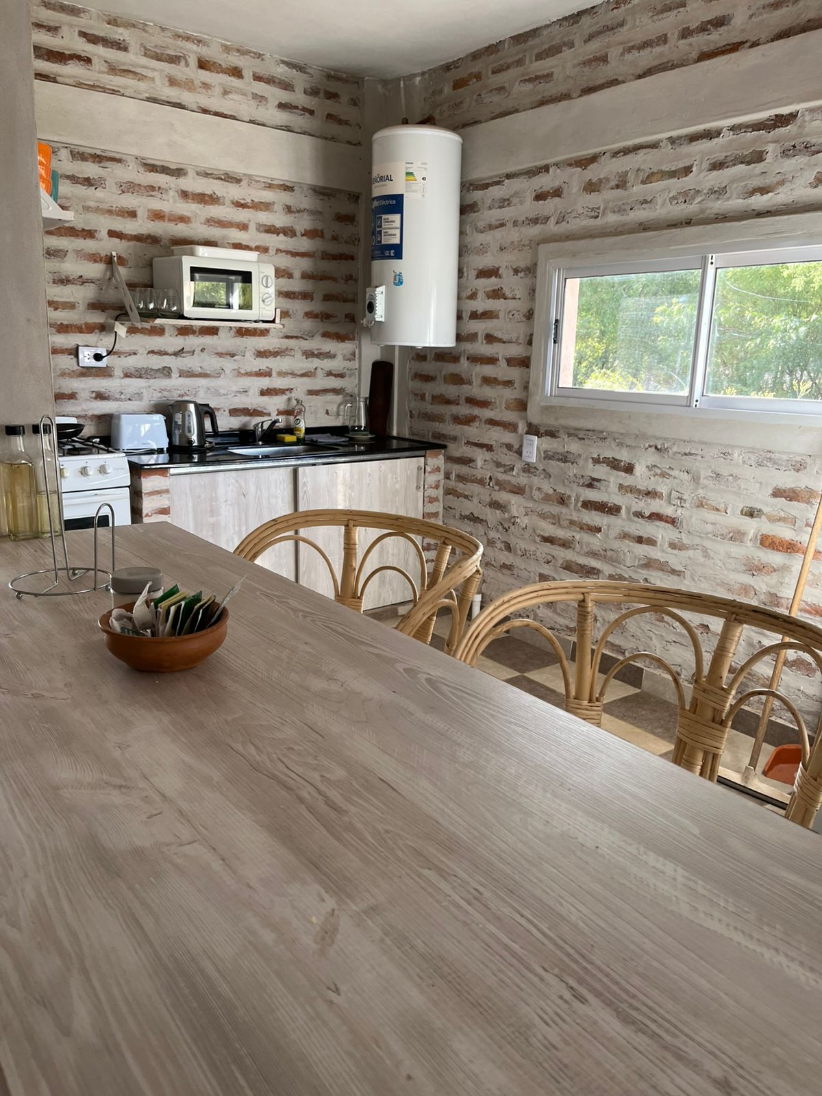 Departamento amplio y luminoso, ubicado en una zona céntrica y tranquila de Chilecito, a pocas cuadras de la plaza principal. Cuenta con dos dormitorios, uno con cama matrimonial y otro con dos camas individuales, además de un cómodo sofá cama en el área de estar. Dispone de cocina comedor totalmente equipada, baño completo y todos los ambientes cuentan con aire acondicionado frío/calor. El departamento se encuentra en planta alta, con acceso por escalera. Incluye cargadores USB y USB-C.