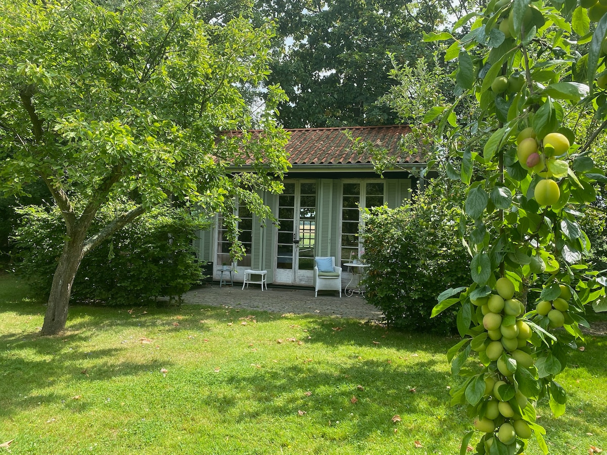De Zwaluwenhof is a green oasis near the artists' village of Kats on the Zeeland island of Noord-Beveland. The garden of half a hectare is a botanical gem with fruit trees and beautiful vistas to the Zeeland farmlands and the Zeeland Bridge. Places such as Goes, Zierikzee and Veere are about a 10-minute drive away. De Oranjerie is a cozy, detached 'gite' of 27 m2, suitable for 2 people. With terraces all around and beautiful views. This holiday home offers a lot of privacy and tranquility.