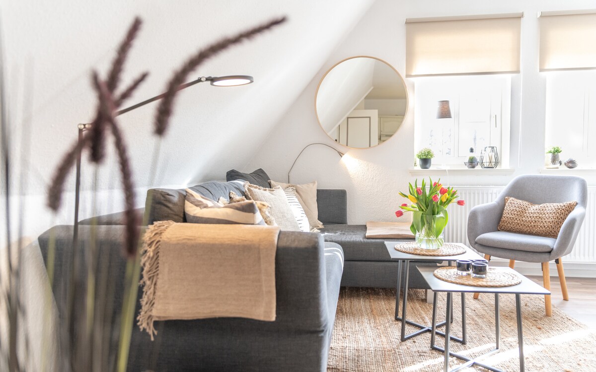 我們的公寓2位於閣樓,可欣賞綿羊和瓦登海的最佳景觀。 它有一間超大臥室,配有彈簧牀,二樓還有一張140公分的單人牀。 這裡還有設備齊全的廚房-客廳和帶淋浴間的浴室。 熱水浴缸和桑拿房可供共用。 只需和其他房客一起出去玩。 下樓梯, 2分鐘後即可抵達海灘。