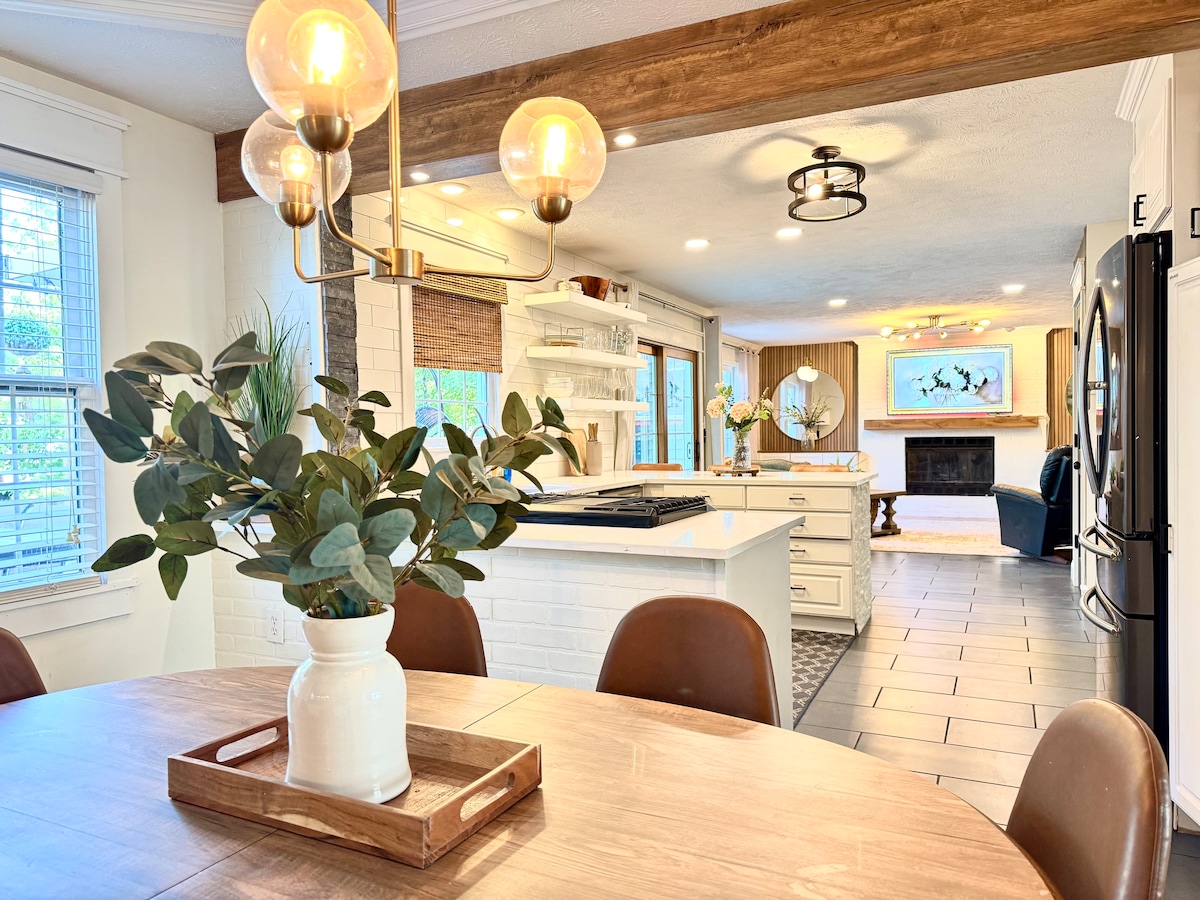 光線充足,坐落在Maplewood社區的成熟樹木中。這個單層磚房位於市中心;靠近上城和市中心、ISU和IWU的校園,距離Rivian和State Farm不到10分鐘。全新翻修,設計現代美學,我們的房客來探索布盧明頓/諾馬爾,但告訴我們,他們在現代牧場度過時光和放鬆身心也同樣快樂。在您入住期間,可使用新安裝的電動車充電器!