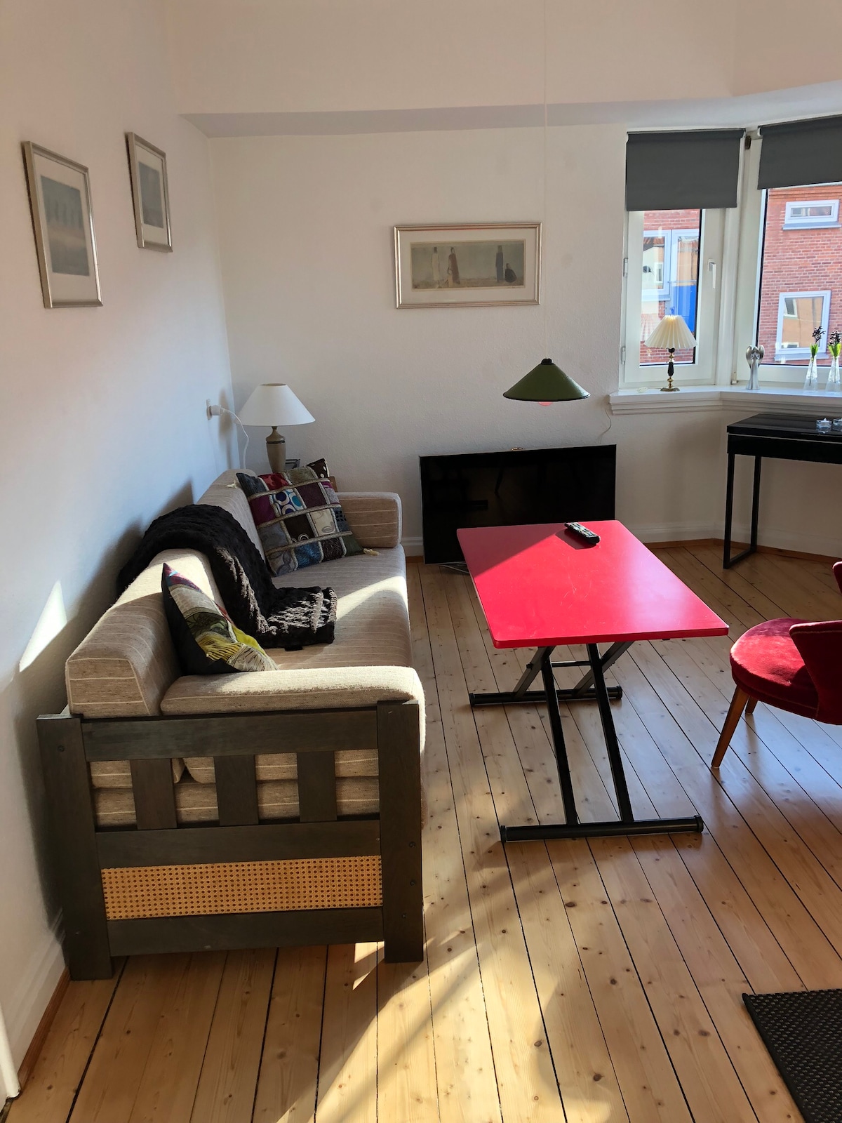 位於奧爾堡市中心的舒適公寓。 寬敞的臥室,配有工作空間和雙人牀。 舒適的客廳,有兩張單人牀、用餐區域和舒適的電視角。 較新的廚房和漂亮的浴室,配有獨立淋浴間。 可提供5個就寢具。 房價包含牀單和毛巾。 隨時免費咖啡和茶 電視有網路和內建投影功能
