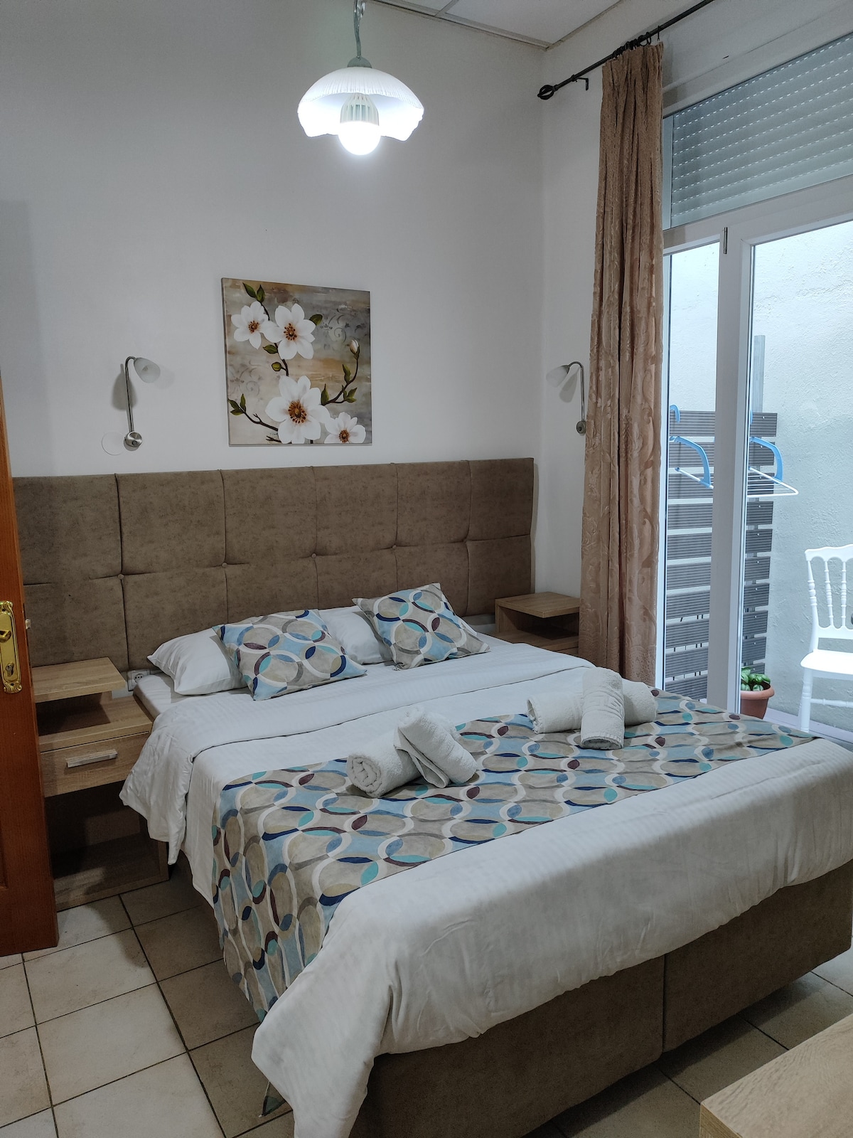 這是一個12平方公尺的獨立單間公寓,有一張雙人床。單間公寓還有一個設備齊全的廚房,配有咖啡機。有一個小陽臺,您可以在欣賞大海的同時享用咖啡。該單間公寓位於埃雷索斯海灘前安靜的區域,距離水域約10公尺。距離第一家酒館和商店約50公尺。