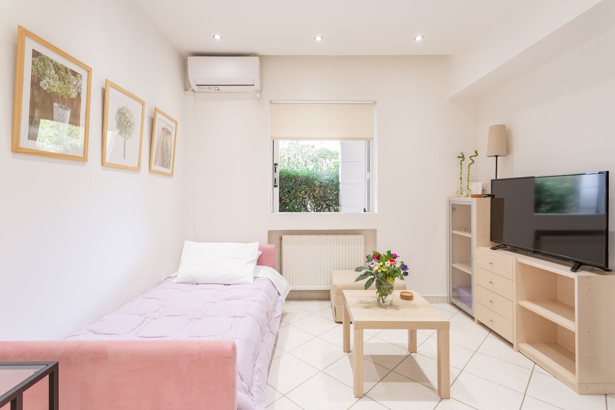 我們的40平方公尺單間公寓位於Xalandri市。新裝修,裝飾簡約舒適,是雅典郊區的完美度假勝地,一切都靠近市中心,在需要時也很放鬆。設備齊全的廚房、空調和智慧電視,滿足放鬆旅客的需求。該地區有許多美麗的地方可供探索。非常適合小家庭、情侶和獨自旅行者。非常靠近機場和港口。