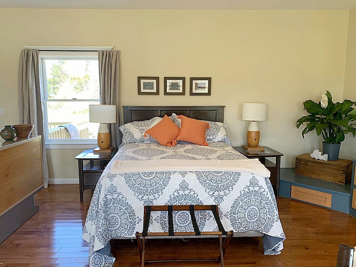 Relax in a spacious, private suite nestled on 1.5 acres in a premier birding area of Cape Island. You are staying in Cape May's original Lifeguard Headquarters, renovated with a new deck, patio, bathroom, and beautiful views of Shunpike Pond. Includes a private deck and patio, BBQ, parking, Queen bed, kitchenette with microwave, fridge, toaster, and coffee bar. The suite does not have a separate bedroom. It is attached to the main house. Beach tags, chairs, and an umbrella are included.