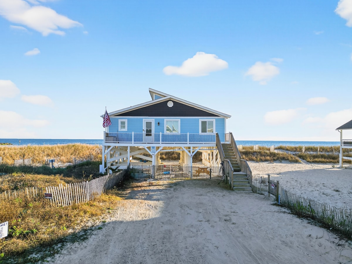 Escape to Paradise on Topsail Island! -Come stay at our charming beach house, just steps from the sand and surf. Whether you're sipping coffee on the deck or watching the sun rise over the waves, you’ll love the unbeatable ocean view and perfect location -Direct beach access – no roads to cross -Stunning, uninterrupted ocean views - Private outdoor spa as well as all linens provided -Walking distance to downtown shops, restaurants and the pier -Family-friendly and full of nearby activities
