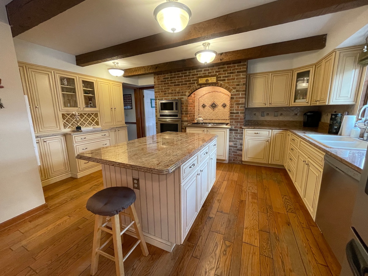 非常適合家庭入住!! 超級乾淨-鄉村風格的房子,位於草地上,設有超大戶外泳池、4間臥室和2間全功能浴室、1間全功能浴室、洗衣機/烘乾機、充足的停車位,來放鬆身心或充分利用所有地點(請參閱下面的街區部分)周圍有綠地,區域設施包括酒莊、酒廠、高爾夫球場、新澤西州馬公園、六旗、步行小徑、購物、歷史悠久的市中心等