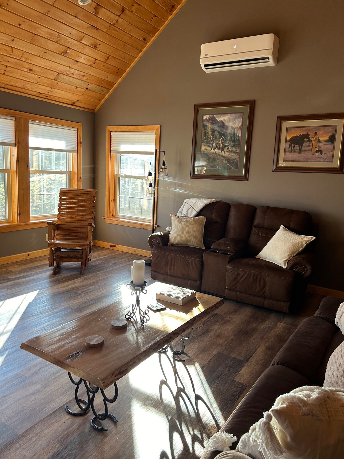 Our charming cabin, renovated with modern amenities, is nestled on 3 acres of picturesque woodland, near state land, perfect for families or friends seeking outdoor adventures. Enjoy a comfortable bedroom, a loft area for extra guests, and breathtaking views from the large deck. Immerse yourself in nature, and stay connected with high-speed WIFI. Book your stay today to experience peace and serenity in our little slice of paradise.