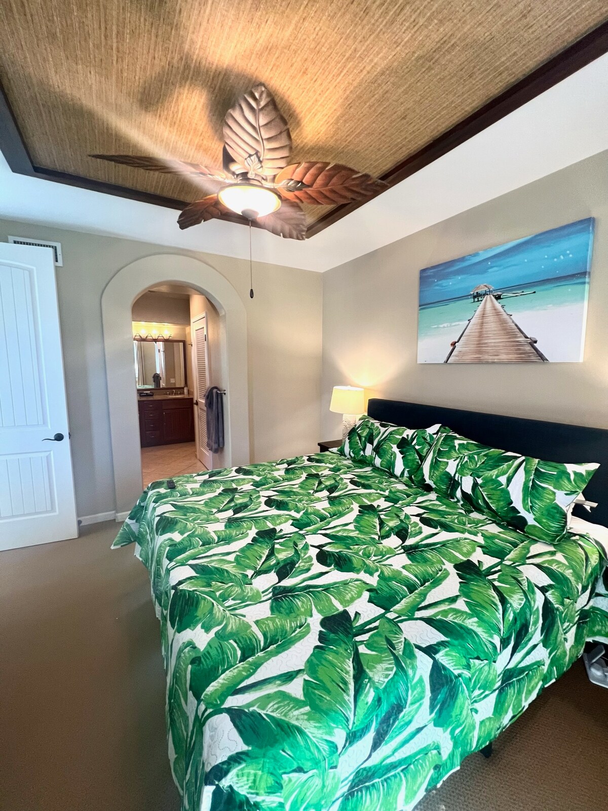 位於威可洛亞海灘大道(Waikoloa Beach Drive)。這個熱帶天堂是我們的第二個家,並且受到妥善維護。佈局開放、清新且明亮。這是一個真正的家,擁有您需要的所有舒適。從兩個陽台上,您可以看到高爾夫球場。非常安靜和美麗的環境。我們的兩層聯排別墅有兩間寬敞的臥室和浴室。我們還有一個私人洗衣房,配有全尺寸洗衣機/烘乾機和全功能廚房。