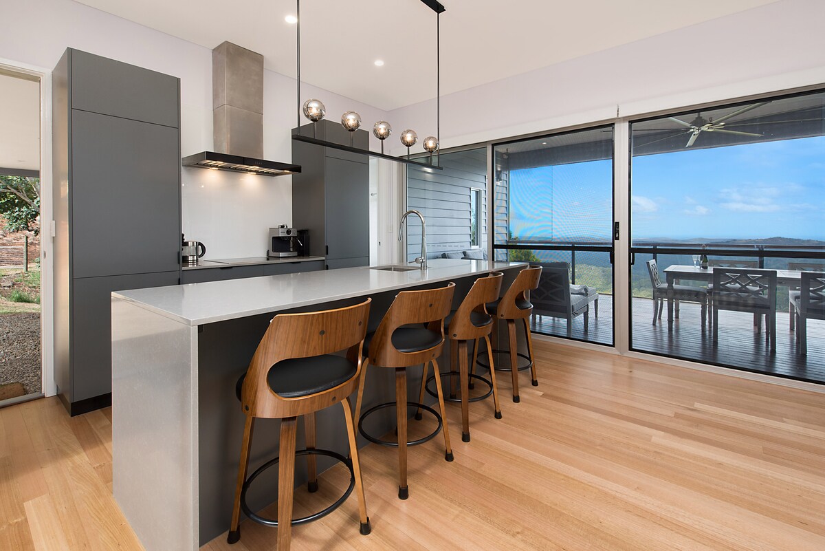 Belltree Ridge is an absolute treasure in a stunning location. It is an extremely unique hand crafted homestead built from reclaimed and local timber. It offers complete privacy and is just 11 kms from the township of Maleny. For winter comfort, a wood burning fireplace and for summer an outside fire-pit . We also have ducted air-conditioning and heating. We now have Starlink Wi-fi but will happily turn it off so guests can really disconnect from their busy lives.