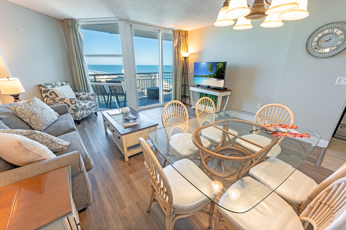 Oceanfront condo with balcony & resort pool