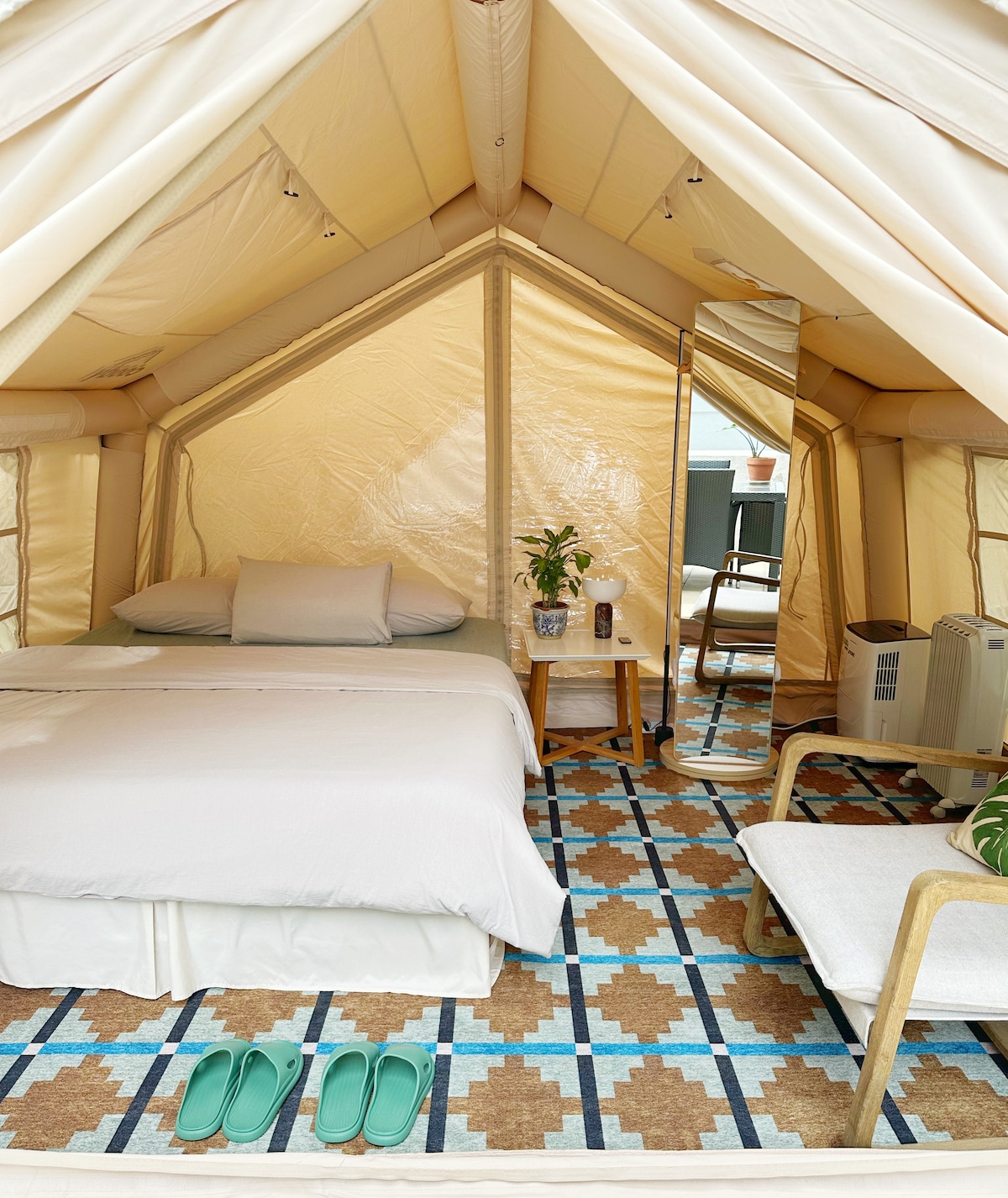 位於半山區 (Mid‑Levels) 的私人屋頂帳篷住宿,提供露天生活空間,以及在城市上空的一片難得的寧靜。 帳篷設備齊全,配有空調、暖氣、除濕機、柔光燈和一張標準雙人床。 就在外面有您專屬的廁所/淋浴間、洗手台、迷你冰箱和一張 6 人餐桌。 這條街很陡,而且大樓沒有電梯——您需要爬四層樓梯才能到達屋頂。 輕裝出行,在香港上空享受寧靜的度假時光!