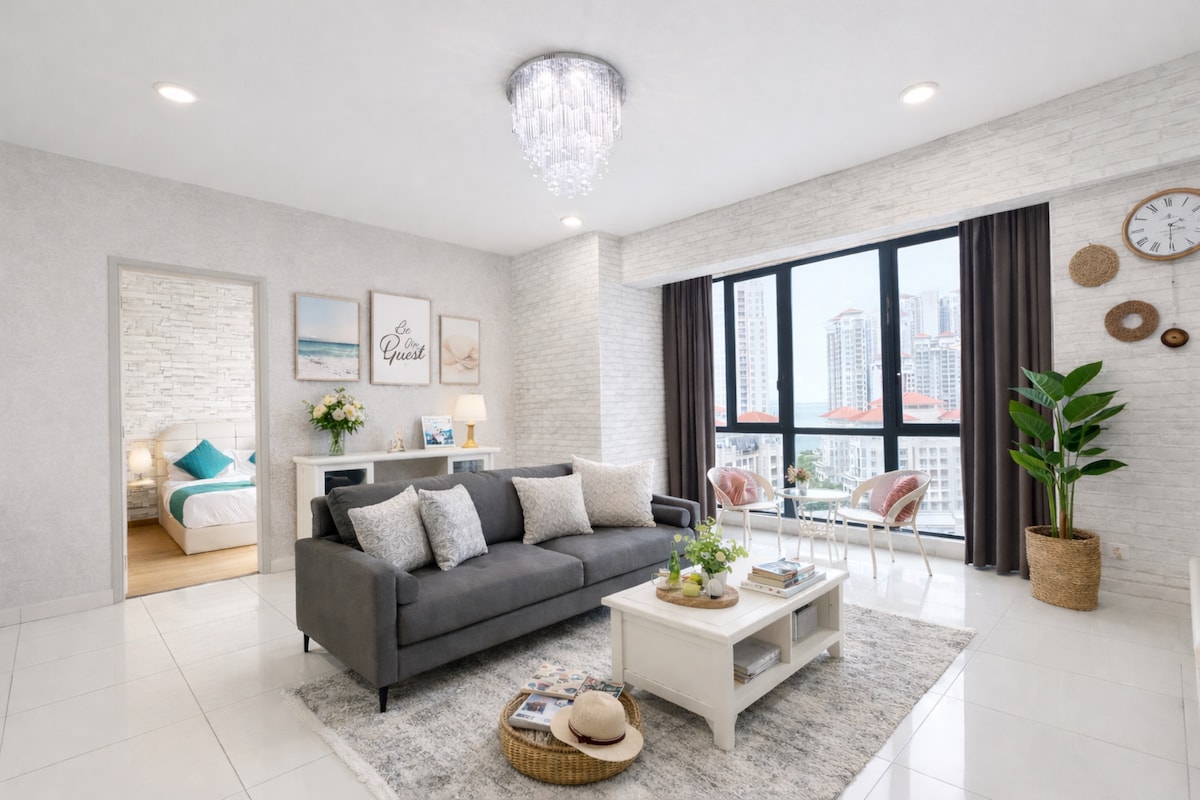 舒適的複式2間臥室海景單位,位於新關仔角( Gurney Drive )沿線。 步行即可抵達檳城最令人興奮的購物中心--Gurney Paragon & Gurney Plaza。 這間海濱公寓配備了俯瞰Gurney Drive和健身房的無邊泳池。 我們的公寓位置輕鬆,如果您不打算在檳城開車,這並不是問題。 搭乘Grab前往島上很方便。
