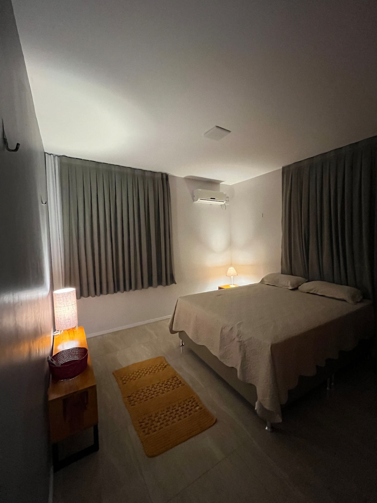 Ideal para tres pessoas, bem localizado, 8km de distância da Beira Mar, Praia de Iracema. Shopping Rio Mar Kennedy, North shopping. Mercado São Sebastião, Centro Fashion Fortaleza, Igreja Redonda... O quarto, é com uma cama de casal, e uma cama de solteiro.