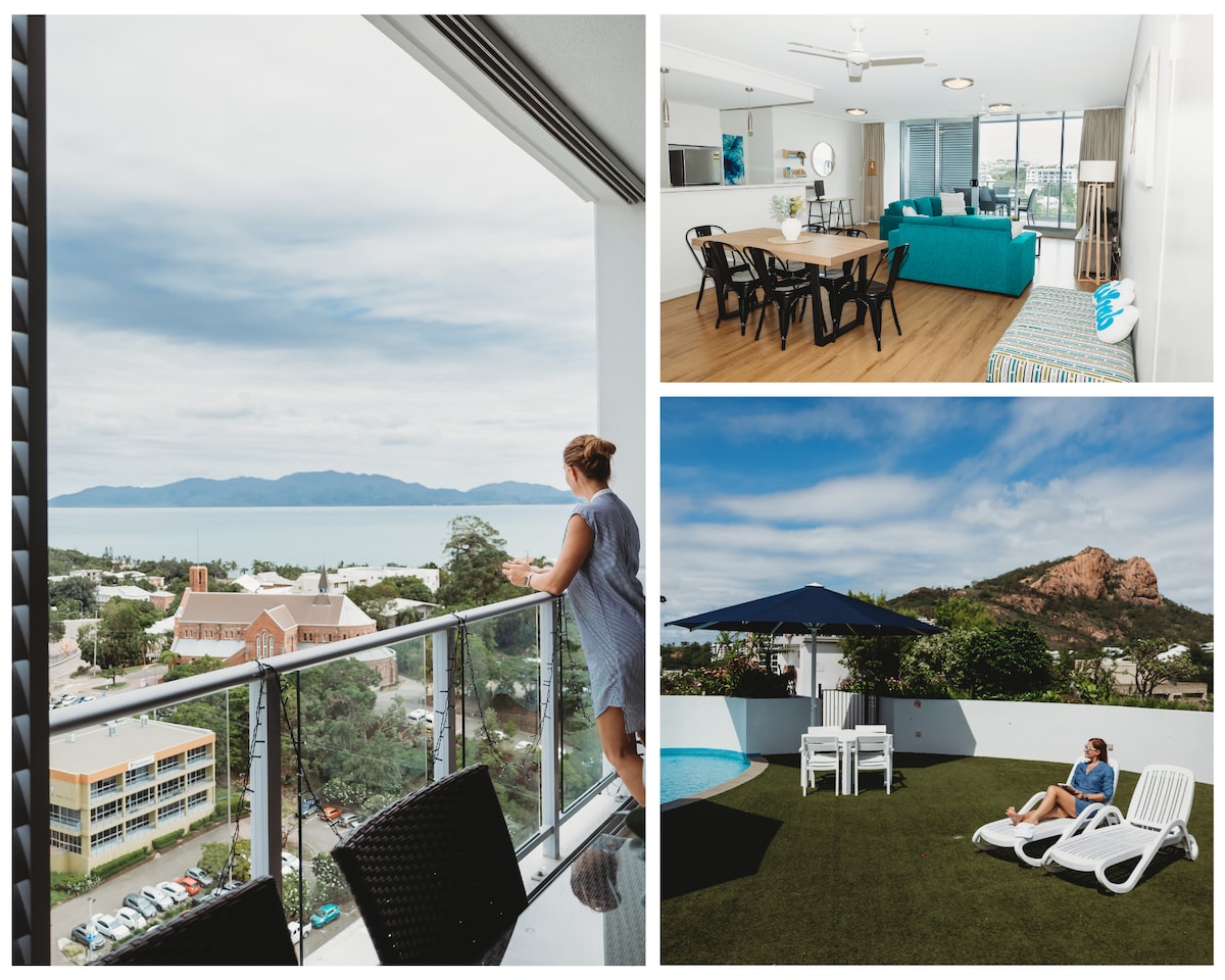 Wake up to spectacular oceanfront and marina views as ferries glide past your balcony. This relaxing getaway puts nature and adventure at your doorstep. Spend your days hiking, snorkeling, bush walking, kayaking, golf, lawn bowls or even toad racing. Watch rock wallabies on your doorstep, enjoy spectacular sunsets, and relax in the evening the Townsville city lights. FREE Wi-Fi & Netflix / 4 pools / Spa & gym / 2-minute walk to shops & cafés & supermarket🌴 Absolute holiday atmosphere 🌴