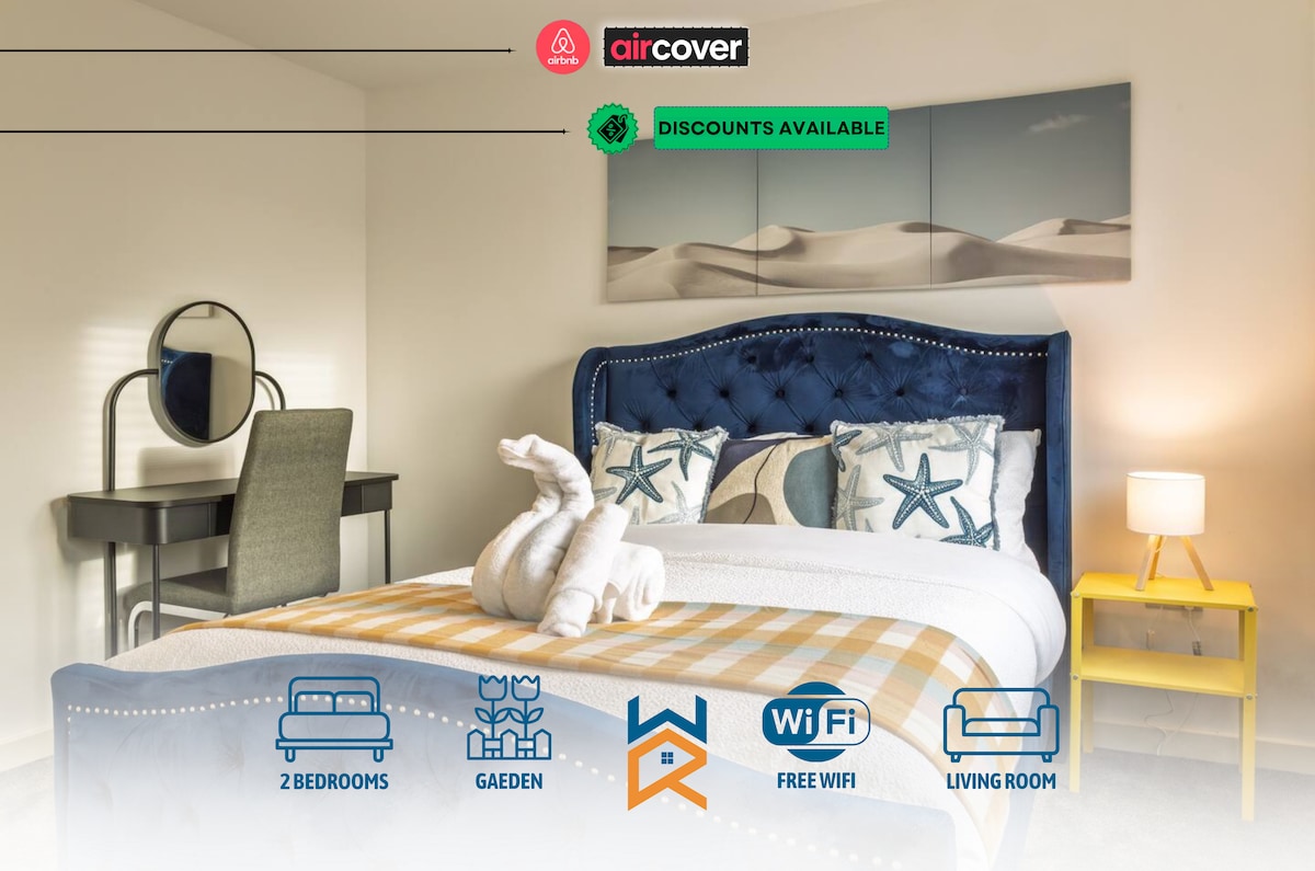 位於私人道路上的現代2床房屋。 靠近伯明翰機場(開車8分鐘)、伯明翰國際火車站、NEC、Resorts World和HS2。 •抵達時提供茶、糖、牛奶 •房子前面有2個分配的停車位(不適合長型貨車) •兩張記憶棉加大雙人床 •超高速150Mbps Wi-Fi • 50 吋電視,可收看 Freeview/Netflix/HDMI •設備齊全的廚房 • 洗衣機/熨斗 • 提供浴巾 此房源最多可供 4 人入住,配有 2 張加大雙人床。