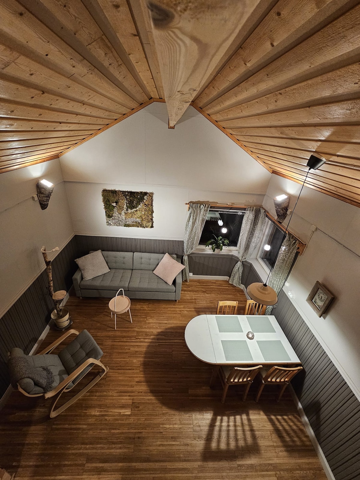 This unique, 100+ year old cottage is located in a quiet residential area just a few kilometers away from the city center. It is close to the highway E4. The next bus stop and a supermarket can be found in immediate vicinity. Bikes can be rented for an additional fee. The cottage is suitable for 2 people and offers a living/sleeping area, a fully equipped kitchen and a bathroom with shower and washing machine. The house can be heated with electrical heaters, a heat pump or a wood-burning oven.
