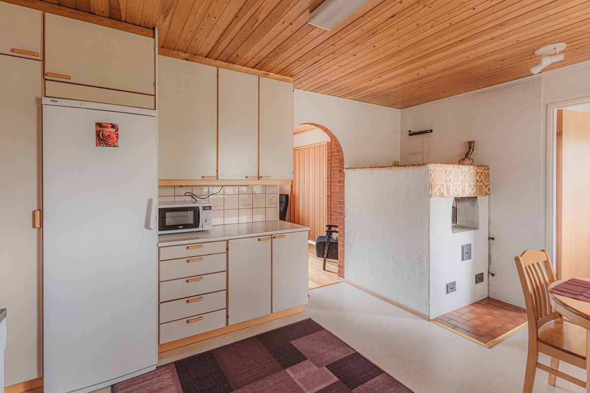 Welcome to enjoy your holiday in Rovaniemi and be our guest. Cozy 50m2 apartment of a familyhouse by a river: Kitchen, livingroom with sleeping loft, bathroom, balcony, underground sauna and jacuzzi (extra price), barbecue and parking place. There are four beds (one double and two singles) and if necessary baby's bed. Apartment is located in a peacefull familyhouse area and it takes 5 min drive and 20 min walk to city center. Supermarket is very close also (2 min drive and 10 min walk).