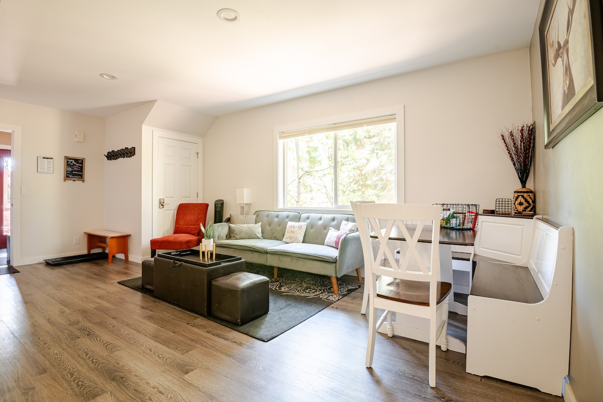 最近翻新的單間公寓,位於安靜的地方,步行/搭乘接駁車即可抵達村莊和娛樂中心。全功能廚房讓用餐變得輕鬆,還有一張雙人床和兩張小型折疊式地板床墊。公共區域有洗衣機/烘衣機。WiFi非常適合在Tahoe工作和上學。 步行兩分鐘即可抵達電動車充電器。 **由於嚴重過敏,不允許攜帶動物,包括服務性動物。** 所有稅費和費用均包含在列出的價格中。Placer Co. TOT許可證# 70826