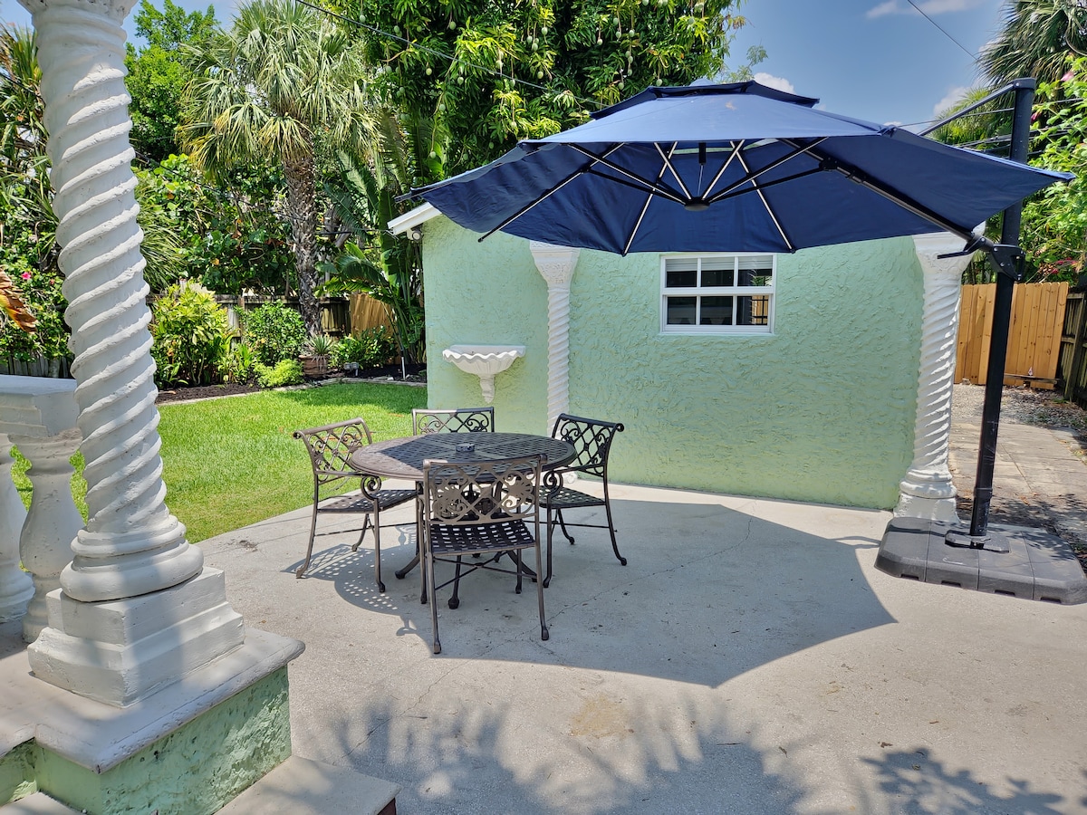 這間美麗的Key West Style單間公寓配有廚房和WiFi ,位於火烈鳥公園的歷史街區。 靠近餐廳、市中心迷迭香廣場、諾頓藝術博物館、WPB會議中心、棕櫚灘國際機場、沿海水道,開車5-10分鐘即可抵達棕櫚灘的沃斯大道和棕櫚灘。 我們歡迎情侶、獨自冒險者和商務差旅人士,他們可以享受配有鹽水泳池和水療中心的私人後院客房。
