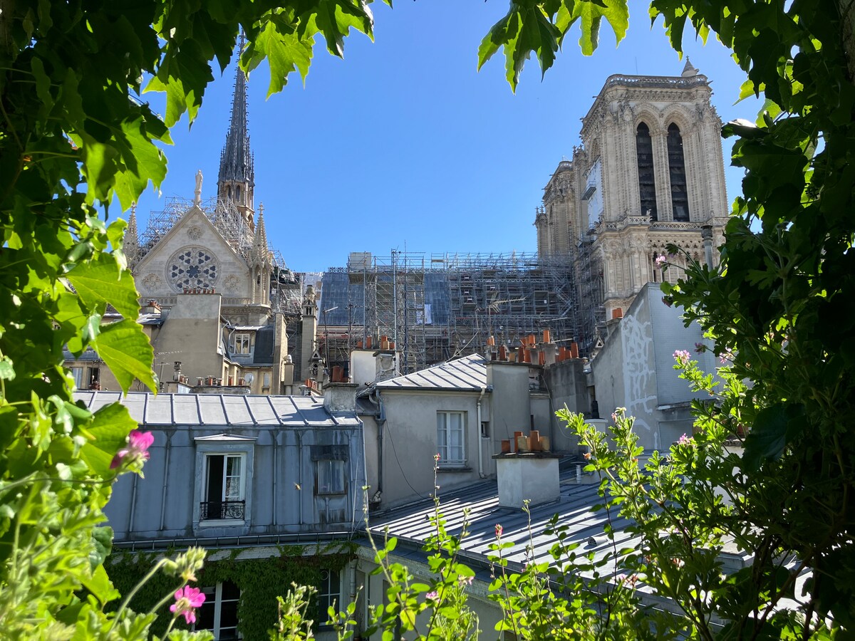是的,這正是從你的窗戶看到的景觀。 無論是度蜜月,或只是想在巴黎的家中,在自己的陽台上享用面向巴黎聖母院的早餐,Severine。 看看塞納河和屋頂,太陽在巴黎聖母院後面逐漸消失,天空變成50種紅色。 要前往您的頂層公寓3樓1臥室複式公寓,配有空調,在我們位於市中心的400年歷史建築中有3層樓要爬,但浪漫的地方是值得的,問問我們的房客...